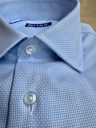 Soft blue color with a dobby weave that provides texture. Wrinkle treated for low maintenance. As worn by the entire Columbus Crew locker room!